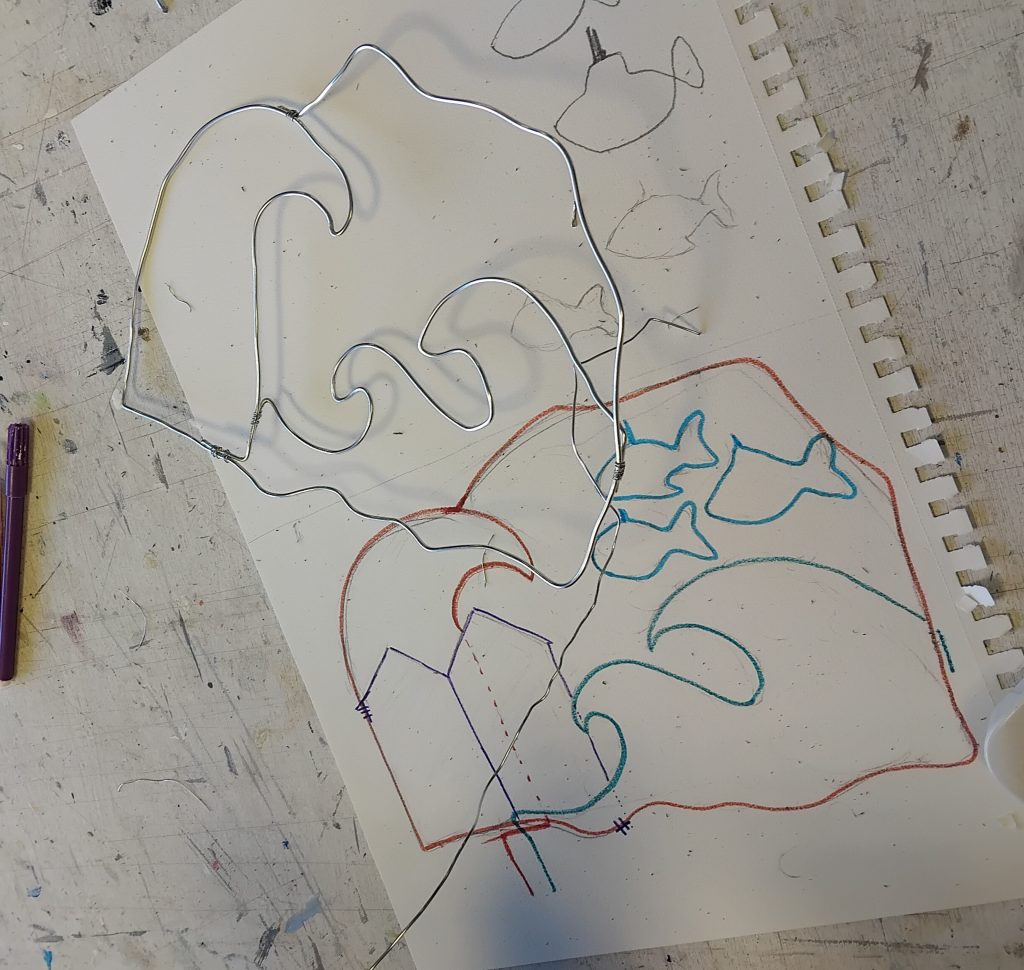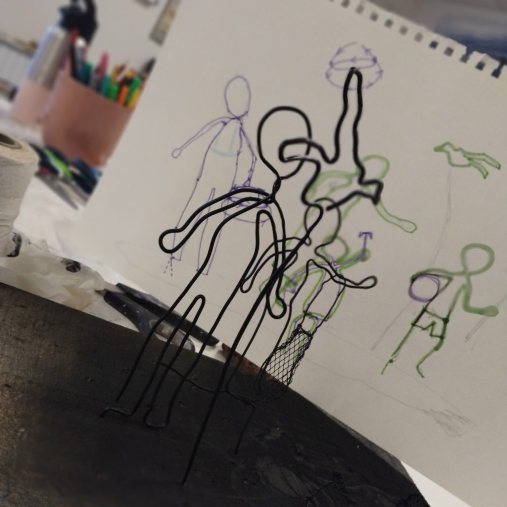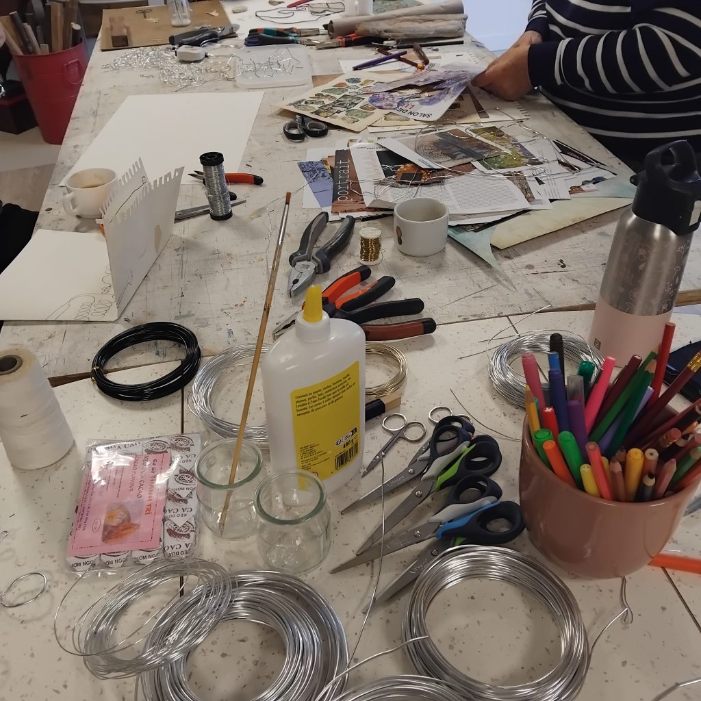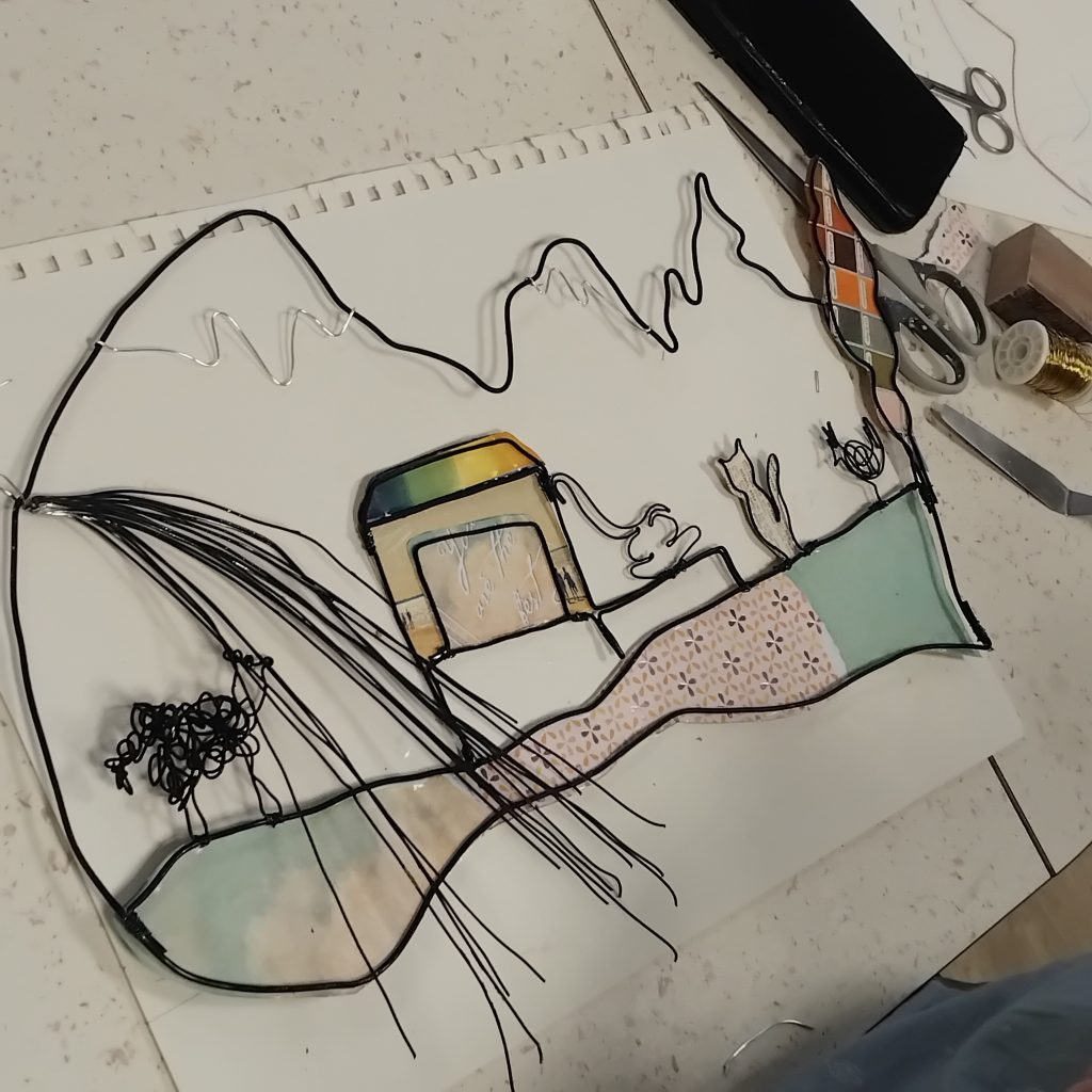 Le fil de l'histoire!Lors de ce stage, je vous propose de créer une scène – Une petite histoire prendra vie par des silhouettes en fil d’acier. Puis il faudra y ajouter un peu de papier pour les mettre en valeur –